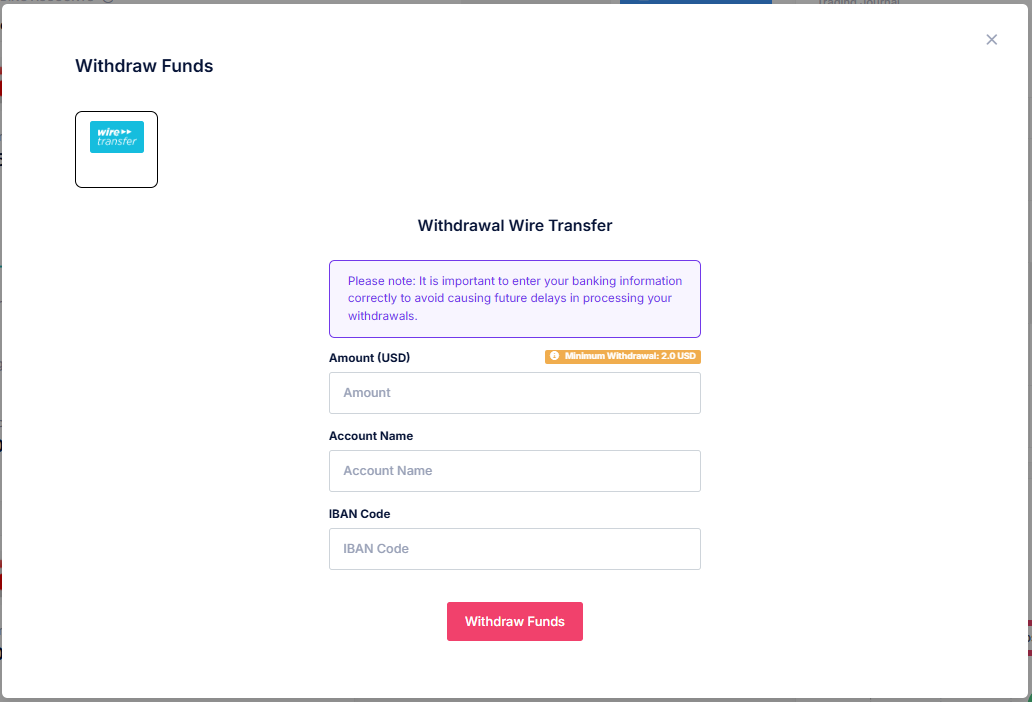 IMPORTANT NOTE: Despite the base currency of your FrontBroker Wallet [USD]; you will receive the funds converted to the currency of the destination bank account.